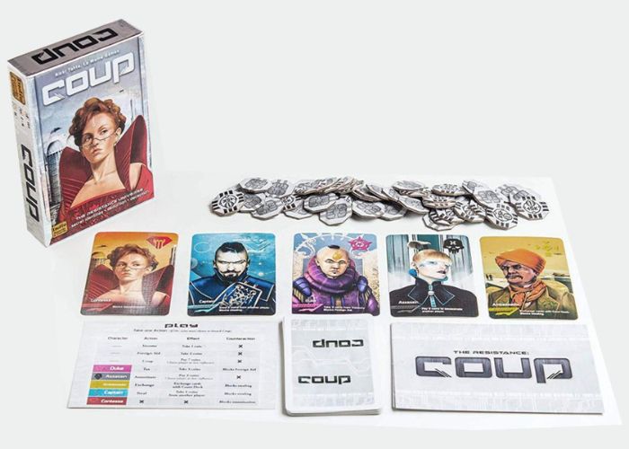 INDIE BOARDS & CARDS In a future where the government is run for profit, all but a privileged few live lives of poverty and desperation. The Resistance rises out of these oppressed masses in revolt and throws the government into chaos. To take command, you must destroy the influence of your rivals and drive them into exile. Only one can survive the Coup, a standalone card game set in the universe of The Resistance.